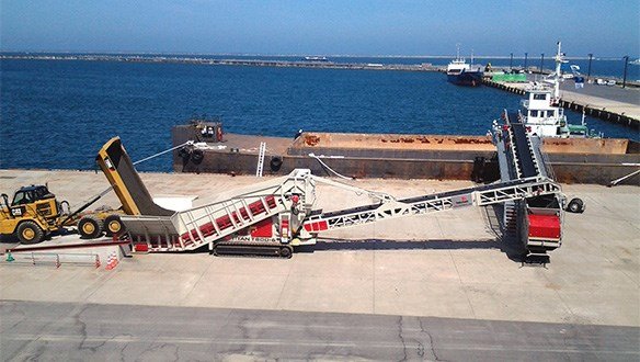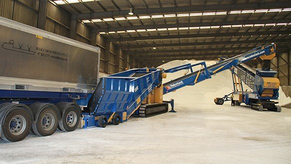 The range of Mobile Bulk Reception Feeders allows the operator to directly unload trucks easily to eliminate the double handling of material. The fully tracked mobile units are used to take the ‘surge’ of material from up to 70 tonne trucks and transfer to other Telestack equipment or auxiliary equipment. The mobility of the units allow them to be utilized in a range of applications and industries.