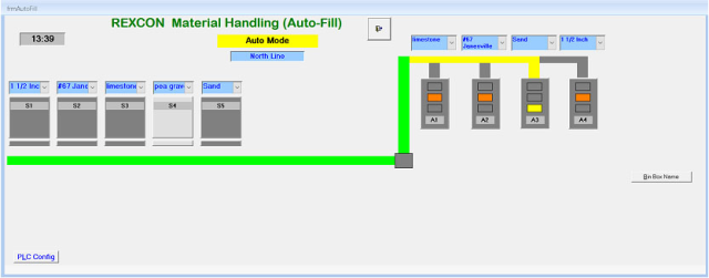 Processing of a silo no-flow is configurable allowing either (1) keep the silo gate open, display alarm on the PC, activate a PLC output to sound an optional alarm, and wait for more material or (2) close the silo gate and open another silo gate with the same material.