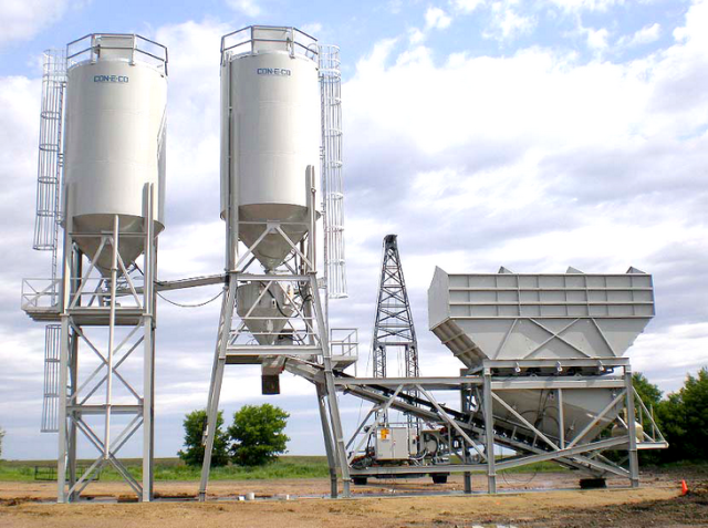 - Aggregate batcher is equipped with two discharge gates and features CON-E-CO’s “break away” design to assure a smooth opening