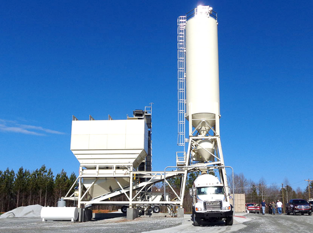 The Batchmaster batch plant offers superior strength and large storage capacities. The Batchmaster can be delivered in a single load, including up to a 565bbl silo and 48 cubic yard aggregate storage bin.