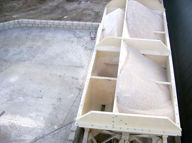 - Raked discharge gate design provides relief for material as it discharges onto the mixer charging conveyor