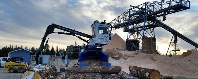 The stationary, electric Peterson 5050H Delimber Debarker Disc Chipper produces high quality low bark content chips for wood pulp and pellets, processing whole trees in one continuous operation.