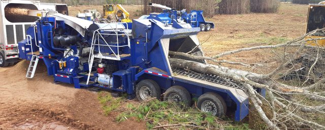 The 6300B Drum Chipper is powered by a 1050 HP (772 kW) C27 Caterpillar engine, and has an optional Tier IV engine available. A PT Tech wet clutch has also been added to the machine. At 85,000 pounds (38,555 kg), the 6300B was designed for operations requiring high production and frequent moves between jobs.