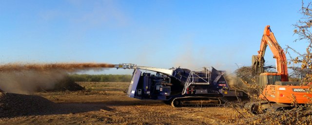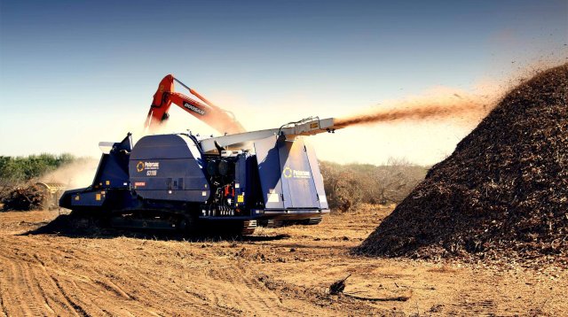 The track mounted 6310B Drum Chipper is suited for high volume biomass producers who have a wide variety of feed material, from logs up to 36″ (91 cm) in diameter, to brush and small feedstock.