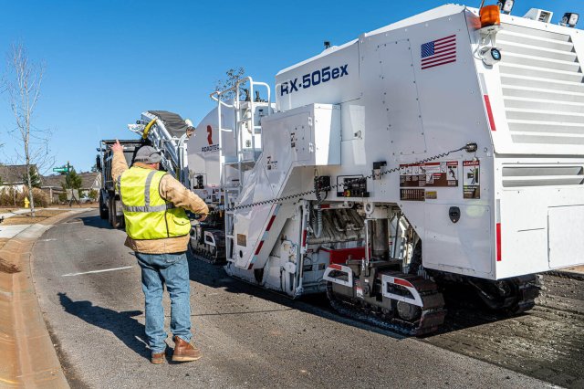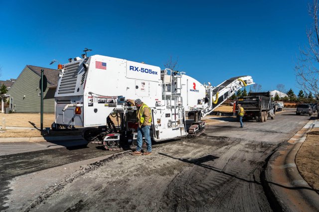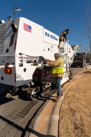 The RX-505 offers enhanced features and is built for easy maintenance and superior operator comfort and safety. The cold planer cuts up to 13” (330 mm) deep and includes a 60° front load-out conveyor swing. The RX-505 incorporates high-function conveyors as well as automated controls for rpm, water, elevation, load, and traction.