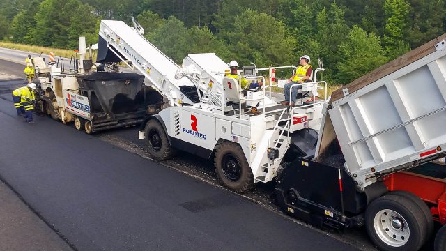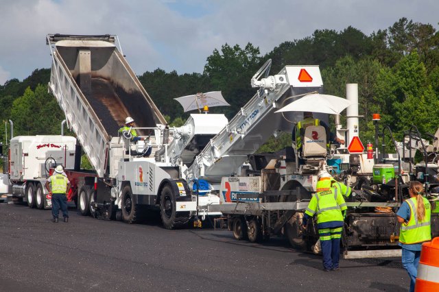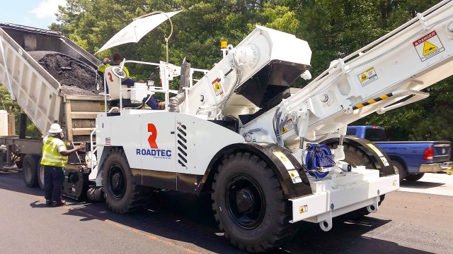 The Shuttle Buggy 3000 Material Transfer Vehicle (MTV) is an efficient and productive MTV. The powerful yet maneuverable SB-3000 provides a quality mat without sacrificing comfort, safety, or efficiency. Features include easy maintenance access, a tight turning radius, bright lighting, nimble steering, and high visibility cameras. The SB-3000 has a 25-ton storage capacity and is powered by a Stage 5, Cummins® B6.7 engine.